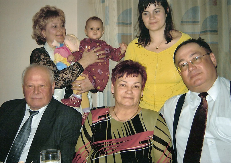 Sohn Peter Vavrinský. Stehend von links: Peters Frau Valéria Vavrinská mit Enkeltochter