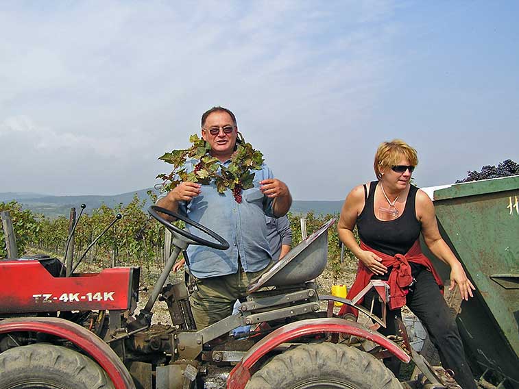 Peter Vavrinský nach einem arbeitsreichen Tag bei der Weinlese 2005. Auf dem Weingarten