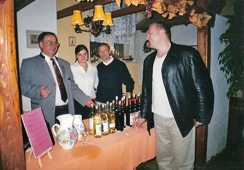 Peter Vavrinský, Tochter Michaela und Michael P. Brehler bei der Weinpräsentation.