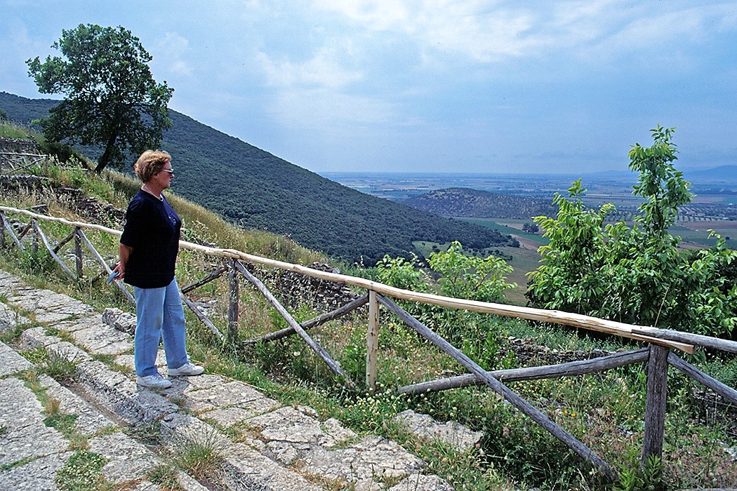 Blick von der Ruinenstadt in die Ebene von Grosseto