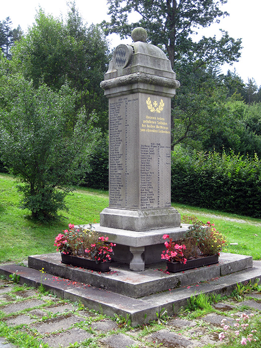 Das Kriegerdenkmal vor der Kirche für die Gefallenen der beiden Weltkriege
