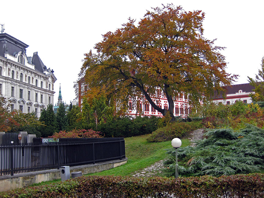 Es regnet immer noch und wir gehen vorbei am Reichenberger Schloß, um mit der Strassenbahn